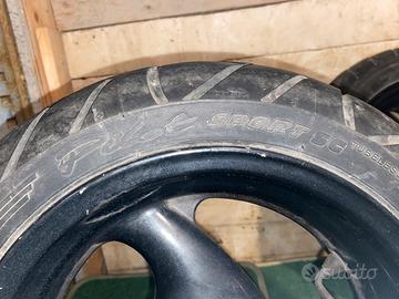 cerchi in ortime condizioni con leggerissimi difetti visibili in foto, gomme di qualità (michelin pilot sport sc anteriore e pirelli evo 22 posteriore) e in ottime condizioni.
