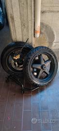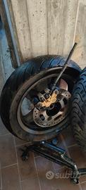 La ruota anteriore e in buone condizioni mentre la ruota posteriore e in buone condizione soltanto il cerchione .