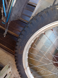 Vendo ruote moto trial anteriore solo montata nuova posteriore usata complete di cerchi entrambe 130 euro