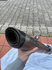 Terminale di scarico Sc Project S1 per ktm duke 890 leggermente danneggiato sulla parte del fondello in carbonio in seguito ad una scivolata. Vendo per passaggio ad altra moto.