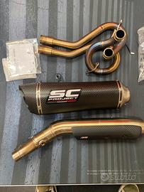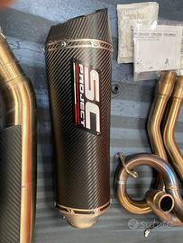 Gruppo completo 2-1 acciaio inox, con silenziatore SC1-R in Carbonio omologato euro5 per TMax 560 (2022-2024). Condizioni pari al nuovo, con all’attivo 3500km.