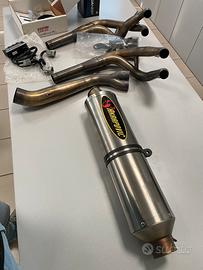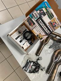 Vendo splendido kit RACING completo composto da: scarico completo 4-2-1 in acciaio, terminale Akrapovič in titanio, centralina aggiuntiva Dynojet Power Commander (Fuel Injection Module), cablaggi e componenti necessari al montaggio. Il kit era montato sulla mia Kawasaki Ninja ZX-6R 636 versione 2003/2004 ed è stato smontato perfettamente funzionante. Usato pochissimo. Collettori racing con saldature in perfetto stato. Terminale Akrapovič con staffa e fascetta originali. Questo scaricocambia completamente la moto, necessita di mappatura adeguata con centralina che vedete nel kit. SOLO PER INTENDITORI, COLLEZIONISTI O PISTAIOLI. No omologazione, no perditempo, no “ha il DB killer?” Grazie Disponibile anche per spedizione