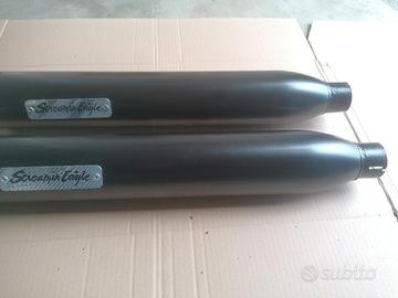 Vendo scarichi screamin eagle nero, attacco per modelli softeil ma possibilità di adattarli ad altri modelli, possibilità estrarre il dibikiller ed ampliare il saound a proprio piacimento. Accetto offerte che valuterò. Per qualsiasi informazione contattatemi.