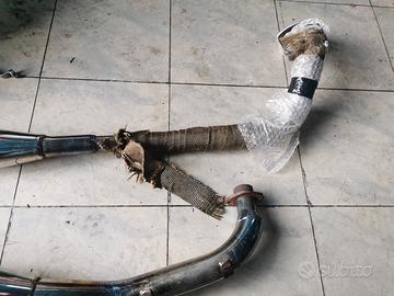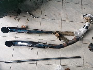 Scarichi completi di collettori della Marving. Montano su Yamaha XVS 650 e con piccola modifica su Honda Shadow 600