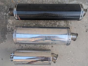 vendo vari silenziatori originali con dbkiller tranne quello in carbonio... possibilità di adattarli su vari collettori bisogna sapere le misure del collettore...sono tenuti bene compresi di vari collettori in base alla vostra moto da fare la modifica dai collettori della moto a quello dello scarico il prezzo si riferisce al singolo