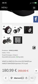 Vendo ,per inutilizzo moto,gli Scarichi Twin Vance&hines usati, rari da trovare Prezzo oggetto nuovo sui 1300$ piu spedizione dall’ america,FUORI PRODUZIONE Produttore: Vance & Hines. Compatibilità: Progettato specificamente per la Yamaha Bolt / R-Spec. Caratteristiche: Include scudi termici a tutta lunghezza per nascondere lo scolorimento dovuto al calore. Materiale: Acciaio inossidabile con finitura nera opaca. Design: Sistema 2-in-2 con il caratteristico trattamento Twin Slash dei terminali. I copri scarichi hanno una botta altezza pedivella