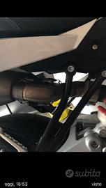 Vendo scarico terminale-silenziatore Akrapovic omologato con certificazione piu raccordo da doppio a singolo attacco completro che si vede nella 2” foto . Montato su Aprilia Shiver-Dorsoduro750-900