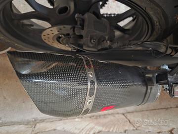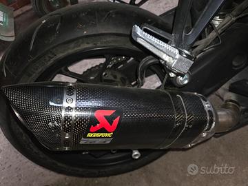 Vendo scarico Akrapovic in carbonio omologato, pagato nuovo 550 euro in carbonio. Compatibile con yamaha R3 ed mt 03 anno 2020. Presenta qualche segno di usura ma completamente funzionante e bellissimo esteticamente. Vendo per cambio moto a una cilindrata più grande. Inoltre come potete cercare su internet i prezzi da nuovo vanno dai 500 ai 650 euro. Verrà spedito con tutta la documentazione e la scatola originale compresa di foglietto per installazione.