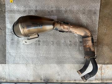Marmitta completa di collettori e catalizzatore in titanio e fibra si carbonio introvabile. Ha il catalizzatore estraibile compreso nel prezzo per Tracer 7 originale Yamaha euro 5 (in vendita si trovano solo euro 4) con dbkiller mai modificato. La moto aumenta potenza e la velocità arriva a 215 km/h come dimostrato da video ufficiale Yamaha su YouTube