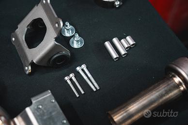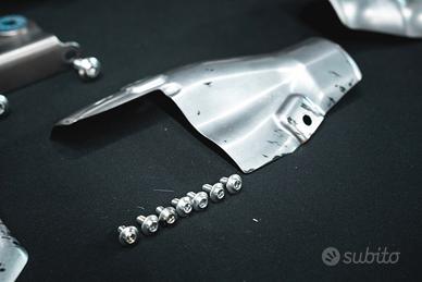 Lo scarico è usato ma in buone condizioni. A causa di una scivolata ci sono alcuni leggeri segni, soprattutto sulle paratie in carbonio. I due silenziatori invece sono seminuovi in quanto sostituiti e utilizzati solamente per delle prove sul banco prova. Come visibile in foto una staffa dei collettori anteriori si è rotta ma lo scarico è comunque utilizzabile in sicurezza.
