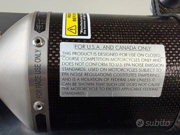 Codice ricambio: 2S001803 Accessorio marca: Aprilia Applicabilità marca: Aprilia kit scarico slip-on Akrapovič Racing in carbonio NON OMOLOGATO PER USO STRADALE, accessorio originale Aprilia (codice ricambio 2S001803). Il terminale è nuovo, mai montato, MANCA SOLO IL suo imballo originale.Progettato specificamente per massimizzare le prestazioni in pista, questo scarico offre il sound inconfondibile Akrapovič e un notevole risparmio di peso rispetto all'originale.Caratteristiche tecniche:Materiale: Silenziatore in fibra di carbonio con fondello in carbonio. Compatibilità: Aprilia RSV4 1100 e Tuono V4 1100 (versioni Euro 5 dal 2021 al 2025/2026). Configurazione: Racing (senza catalizzatore) con Db-killer estraibile. Nota: Per un funzionamento le è richiesta l'installazione della mappa dedicata presso la rete ufficiale Aprilia. Prezzo:Prezzo di listino: € 1.456,50 Prezzo in promozione: € 999,00 Condizioni di vendita:Stato: Nuovo. Spedizione: Esclusa (disponibile spedizione tracciata in tutta Italia o ritiro a mano). Disponibilità immediata. Non perdere l' di equipaggiare la tua V4 con il miglior scarico sul mercato a un prezzo imbattibile. Per qualsiasi informazione o foto aggiuntiva, non esitate a contattarci.