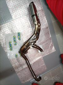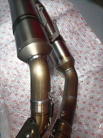 Scarico completo con terminali in titanio. Ne ho avuti parecchi di ogni marca e genere, questo è incredibilmente leggero!! La qualità è superiore al tanto ricercato Termignoni. Imparagonabile!! Monta su 848 e 1098 ma anche su 1198 allargando leggermente i tre fori dei prigionieri. Posso fornire anche centralina con mappa specifica per qualsiasi modello. (In alcune foto mancano gli adesivi, ho appena messo quelli nuovi che si vedono in due foto). Dispongo di moltissimi ricambi per queste moto, chiedete.