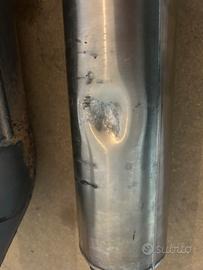 Il silenziatore presenta un ammaccatura sulla parte laterale ma che non compromette l uso, inoltre è presente nella zona che va a contatto con il telaio da montato.