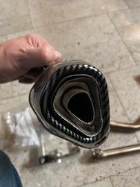 Vendo x disuso questo scerico completo, viene venduto collettore inox con attacco x sonda lambda, scarico in carbonio con minuteria e raccordi, era montato su cb 125 r del 2020 quidi dal 2016 al 2020 va bene, un perfette condizioni senza graffi o imperfezioni, usato solo x prova, premetto che il terminale monta db estraibile ma non ha certificazioni di omologazione preferisco consegna a mano…