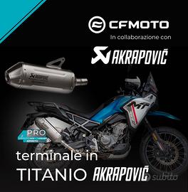 Vendo scarico Akrapovic per CFmoto 450 MT, ricevuto da concessionario ufficiale CFmoto. Lo scarico è completamente nuovo e mai stato aperto ha ancora la scatola sigillata