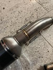 Vendo per errato acquisto, questo scarico completo inox carbonio, fornito di collettore, raccordo e terminale con db estraibile carbon e raccordi x installazione, premetto che era montato sulla honda Cb 125 r, lo scarico non lresenta ammaccature o segni, non ha omologazione e viene venuto così come è.. prezzo trattabile consegna a mano