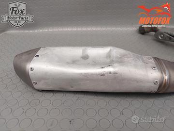 Lo scarico come si nota ha solo una botta nella parte esterna, ma fortunatamente è quasi tutta coperta dalla fiancatina. Per il resto è messo bene, anche il collettore non ha botte eccessive