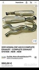 Vendo come da titolo Scarico COMPLETO per Honda crf 450 r Anno 2017 Perfette condizioni senza ammaccature Smontati dopo 10 ore di moto No perditempo no affaristi