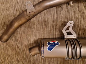 Vendo collettori e terminale Termignoni con certificato di omologazione in perfetto stato, no bolli o deformazioni, acquistato e utilizzato 3000 km. Montato con valigie laterali Givi/Kappa (non tocca da nessuna parte, deduco che ciò accada anche per valigie originali Honda). L'abbinamento collettori + silenziatore offre un importante aumento di potenza (+4.1 cavallli a 7.550 rpm) e coppia (+5,3 Nm a 3.000 rpm): - H13709410IXX - Collettore Scarico Termignoni Inox Honda CRF 1000 L Africa Twin in acciaio inox con molle e alloggiamento per sonda lamdba. Peso 2 kg (-1 kg rispetto originale) - H137080TV - Terminale Scarico Termignoni Relevance Honda CRF1000L Africa Twin silenziatore slip on omologato con db killer estraibile. Realizzato in acciaio inox ed ha il fodero esterno in titanio. Peso 2,4 kg (-2.5 kg rispetto originale) Vendo solo scarico completo