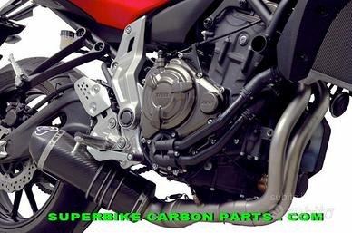 Sistema di scarico completo in acciaio inox con silenziatore Relevance design, db killer estraibile, fondello in carbonio e fodero disponibile in carbonio o titanio. Il sistema puó essere considerato omologato solo se associato al catalizzatore venduto separatamente.