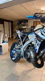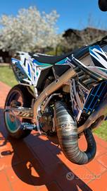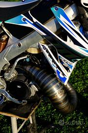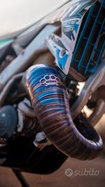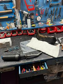 Scarico DBR completo con silenziatore in fibra di carbonio con fondello in alluminio blu, vendo come da foto, lana di roccia appena sostituita, lo scarico è in condizioni perfette sempre oliato, presenta una micro ammaccatura che nemmeno si vede, dalle foto si capisce quanto è lieve, io monto su un Tm 2021, credo che sia compatibile con i modelli precedenti a carburatore!