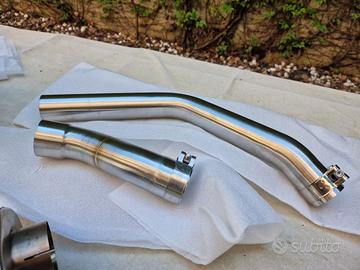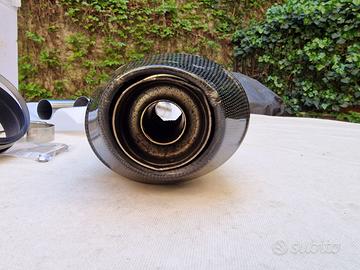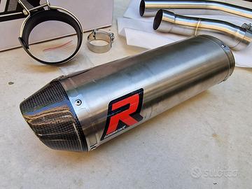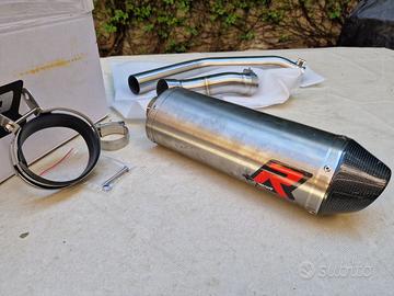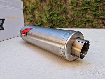 Scarico sportivo slip-on (plug&play) Dominator HP2 (HO005DF) per Honda CBR600RR anni 2003-2004. Acciaio inox con finitura satinata e fondello in carbonio. Il kit contiene: Silenziatore (usato), DB killer (usato), tubo di collegamento (nuovi, mai montati), elementi di montaggio (nuovi, mai montati). Il terminale presenta qualche danno al fondello in carbonio e al tubo di acciaio interno dovuti a una caduta, che non ne inficiano comunque il sound o la solidità strutturale. Il DB killer estraibile al momento è stato incastrato nel terminale, ma può essere comunque reso nuovamente estraibile con una rifinitura dell'estremità del silenziatore. I tubi di collegamento e tutti gli elementi di montaggio sono NUOVI, mai montati. Disponibile per ritiro a mano in zona Roma EUR-Torrino (o via Veneto) oppure spedisco.