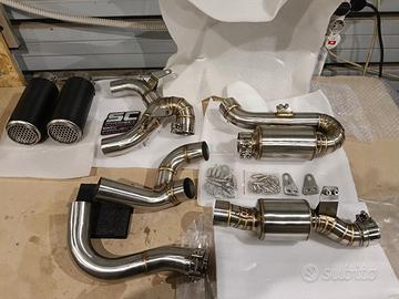per Ducati streefitgher v4 e Panigale v4,lo scarico e nuovo mai usato mai montato, questo scarico artigianale in acciaio inox con doppio silenziatori centrale per rendere il sound più moderato e profondo, chiamato scarico da " tre quarti " perché i collettori rimangono gli originali ( per un maggiore semplicità di montaggio senza dover rinunciare a nessuna perdita di prestazioni)