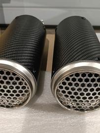 scarico in carbonio doppio, sotto sella,