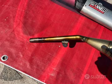 Vendo scarico completo Giannelli per motori 2 tempi (ideale per motard/enduro 50cc come Fantic, Beta, Aprilia, ecc. - specifica qui il modello se lo sai). Il kit è in ottime condizioni generali, pronto per essere montato. Come visibile dalle foto, lo scarico è stato trattato bene e presenta le tipiche saldature a vista della linea Giannelli, sinonimo di prestazioni e sound sportivo. Il set comprende: • Pancia (Espansione): Modello a passaggio alto, finitura trasparente con saldature a vista. Struttura solida, senza bozze. • Silenziatore: Terminale Giannelli con fondello in Fibra di Carbonio. Estetica impeccabile e molto leggero. • Accessori: Inclusa molla di raccordo Condizioni: L'impianto è usato ma ben conservato. Non presenta ruggine passante o crepe. La lana di vetro interna al silenziatore è ancora in buono stato per garantire un ottimo sound senza essere eccessivo. #beta #betarr #betarr50 #motard #50cc #70cc #80cc #tpr #tpr76 #topperformances #fantic #hm #vent #tuning #motoelaborata #am6 #minarelli #2tempi #2stroke #scambio #vendo #ricambimoto