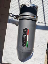 vendo scarico gpr pari al nuovo con meno di un mese e meno di 1000 km,scelta del raccordo per avere lo scarico basso o alto entrambi completi di catalizzatore,silenziatore con doppio dbkiller completo di scatola,raccorderia completa e certificato di omologazione,prezzo non trattabile
