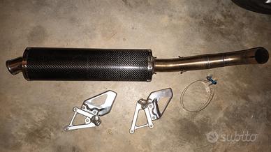 Vendo terminale di scarico in carbonio per Honda vtr sp1, regalo anche pedaline. Scarico non separabile dal terminale. Misura imbocco collettore, 4.6 cm. Terminale perfetto anche per chi vuole adattarlo alla propria moto, o farlo custom. Vendo a 50 euro NON trattabili. No perditempo. Eventualmente per la spedizione, io spedisco solo con Poste Italiane, pacco tracciato e assicurato al costo di 10€.