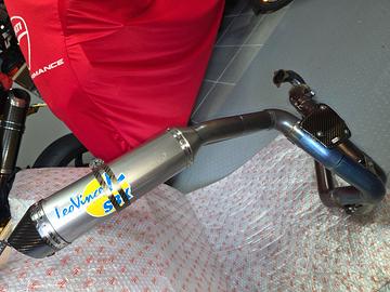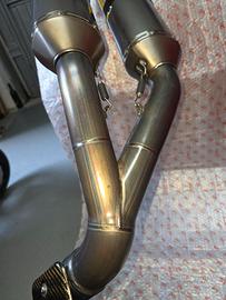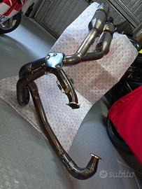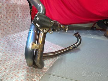Scarico completo FULL TITANIO (collettori 70mm titanio + terminali titanio + fascette e cover carbonio). Leggerissimo!! Adatto a tutti i modelli 1198 e 1098R oppure a modelli 848-1098 semplicemente allargando di 1mm i fori di fissaggio. Posso fornire eventualmente centralina con mappa specifica per qualsiasi modello.