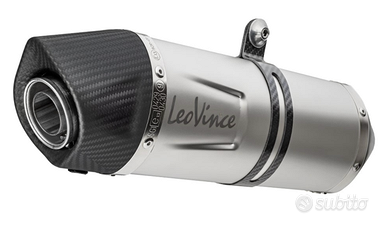 SLIP ON , OMOLOGATO , L'omologazione è valida solo se è installato il catalizzatore, Peso 2,94 kg -1,66 kg rispetto all'originale, Acciaio inox AISI 304, Coppa finale in full carbon, Fibre ad alta resistenza termica (900 °C), Fascetta di fissaggio in full carbon, Logo LeoVince laserato
