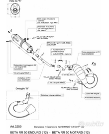 possibilità di spedizione o ritiro in negozio INFORMAZIONI AGGIUNTIVE FULL SYSTEM OMOLOGATO Marmitta Leovince x-fight black Beta 50 RR ENDURO 2012 - Per tutti i motori due tempi 50cc a marce destinati all off-road ed all utilizzo stradale, LeoVince ha sviluppato lo scarico X-FIGHT BLACK EDITION, un impianto omologato CE, perfetto per tutti coloro che vorranno ottimizzare le prestazioni del proprio mezzo personalizzandolo con uno scarico dallo stile nuovo ed aggressivo. Fatto a mano, il silenziatore è completamente realizzato in acciaio inox AISI 304 e saldato a TIG. Il silenziatore presenta un look ancora più raffinato grazie ad una colorazione nera opaca, ottenuta grazie ad una speciale verniciatura a base ceramica. Il terminale è fissato al telaio attraverso una fascetta in carbonio che ne garantisce massima leggerezza e resistenza strutturale. 5 strati di Carbonio nella staffa. Pensato per durare è caratterizzato dalla facilità di smontaggio per la sostituzione delle lane. cod. 3259B