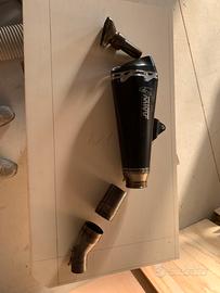 Vendo scarico mivv per Ducati scrambler 800 del 2015 ma adatto anche slle versioni fino al 2021 …scarico omologato con certificati omologazione e con catalizzatore e db killer removibili perfettamente funzionante anche se presenta una piccola deformazione sulla parte anteriore difetto solo estetico non mette in discussione la funzionalità ….lo vendo perché ho venduto la moto …