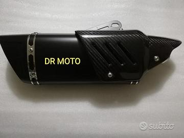 scarico artigianale universale il terminale è di qualità, CON PROTEZIONE IN VERO CARBONIO e circa 40 cm di lunghezza più altre misure in foto. DIAMETRO innesto 51 MM con possibilità di riduttore conico specifico.