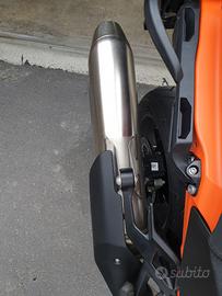 Terminale di scarico originale KTM 1290 Super Adventure 21-24 modificato tramite rimozione di una delle tre paratie interne e forato seconda paratia ottenendo un suono più pieno ma non eccessivo.
