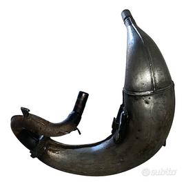 scarico orignale con terminale leo vince, in condizioni discrete, scarico da restaurabile, lo scarico non ha nessuna amaccatura solo qualche segnetto, il terminale a qualche segnetto sulla parte fuori, vendo insieme a 50€