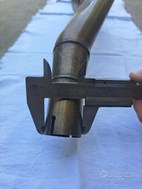 Ho questo scarico GIANNELLI di derivazione Arrow, non omologato, datomi dal vecchio proprietario del mio drz. Attualmente non lo uso, l'ho montato giusto una volta per vedere come monta e sentire un po' com'è. Per montare monta perfettamente, credo sia pure stato adattato perché da un lato del collettore, dove sembra bozzato, è stato fatto apposta per non sfregare nella molla del mono. Non so se sia normale che stia così "basso", eventualmente necessita di qualche sistemata.