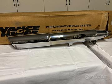 Vendo marmitta per Harley Vance&Hines, originale in ottime condizioni, no ammaccature o segni, confezione originale ,design sportivo , suono profondo aggressivo senza risultare sfacciato, scarico aperto non omologato, diametro di entrata 4,50 cm