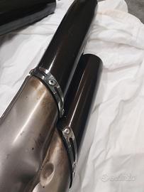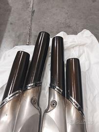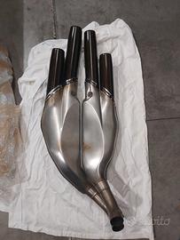 vendo scarico finali per mv agusta f4 prima serie 750 e 1000, originali arrow con omologazione, li vendo come danneggiati perché non sono perfetti hanno piccoli segni e i rivetti non sono originali anche se i silenziatori sono perfettamente funzionanti, prezzo 200 euro più eventuale spedizione oppure consegna a mano in zona Firenze Siena Arezzo Prato