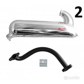 (R.14481) Vendo marmitta a siluro completo di curva e fascia nuovo per Piaggio Vespa solo 50 cc tutti i modelli con motore a corsa bassa tipo 50 Special - L - N - R - SS marca Faco con codice marmitta 0015 e codice collettore 0017 , il prezzo si intende per singolo kit , disponibili più modelli :