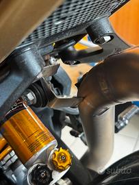Vendo scarico Spark doppio sotto codone (cod. GTR0106TC). Lo scarico come da foto presenta la saldatura della staffetta superiore saltata. Problema facilmente risolvibile con veramente poco con un sovrapprezzo posso anche farlo sistemare io e spedire. Lo vendo perchè ho tolto la moto. A parte il problema evidenziato lo stato del tubo di raccordo e dei silenziatori è pari al nuovo.