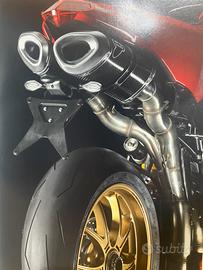 Gruppo di scarico Factory sviluppato da Ducati corse per il campionato del mondo Superbike. Il kit comprende silenziatori in carbonio, di disegno inedito con db killer removibili,collettori in acciaio inox 2-1-2 da 70 mm di diametro centralina con mappatura dedicata e filtro aria ad alte prestazioni.