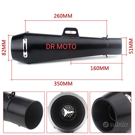 il terminale è 35 CM CIRCA di lunghezza, ingresso collettore 51 mm variabile con adattatore conico in acciaio , in base alle vostre esigenze da 51 a 36 mm.