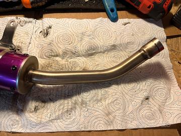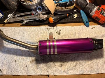 Silenziatore Sp con fondello in carbonio forgiato con inserti grigi, appena stata cambiata la lana di vetro, lo scarico è perfetto lo montavo su un yz 125 del 2024, prezzo poco trattabile