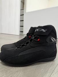 Vendo scarpe da moto TCX. ( numero 43 ) Sistema di bloccafgio caviglia integrato, rinforzo per cambio e freno dietro. Tessuto tecnico simil Alcantara. Indossate 5 volte di numero se va bene. Vendo per inutilizzo.