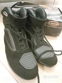 Vendo comode scarpe da moto numero 44 nere, in perfette condizioni. Impermeabili e antivento con membrana traspirante kingtex. Fascia di protezione leveraggi, suola antiscivolo resistente a olio e benzina, paracaviglie bilaterale.