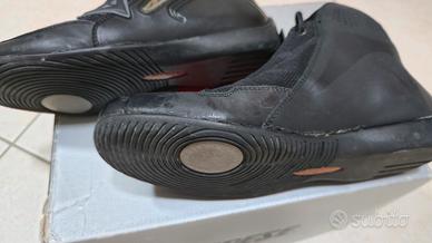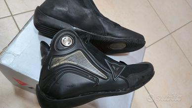 Buongiorno, le scarpe Dainese hanno la suola un po scollata, io ho provato ma non sono stato in grado, devono essere portate da un calzolaio per far riattaccare la suola, apparte questo sono in ottime condizioni, regalo borsello da gamba NUOVO.