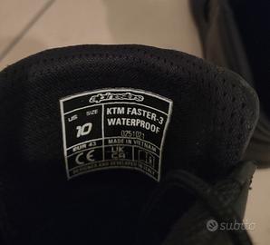 Vendo scarpe da moto marca KTM, modello Faster 3 WP, taglia 10, EU 43. Usate poco e in ottimo stato, come da foto.